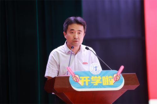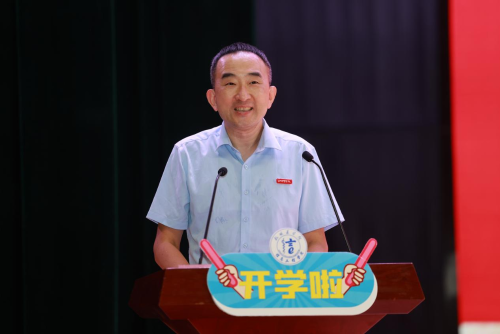 暖场节目结束后,开学典礼在学生的期待中拉开帷幕,信息工程学院院长李凯首先致辞,代表学院向全体新生表示热烈欢迎。他指出,大学是人生“自由探索的远征”,并提出三点期望:一是以解决实际医学问题为导向开展实战学习,二是以交叉创新为羽翼拓展专业边界,三是以终身学习为信念筑牢成长根基。他强调:“在信息工程领域,‘做过’比‘学过’更有说服力,‘能跑通’比‘考高分’更有分量。”