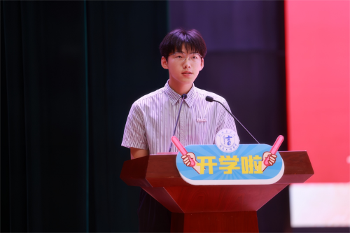 医信2501班新生王忆辉作为新生代表发言,表达了珍惜机遇、勇担使命的决心,呼吁同学们“永葆好奇心、知行合一、友善互助”。