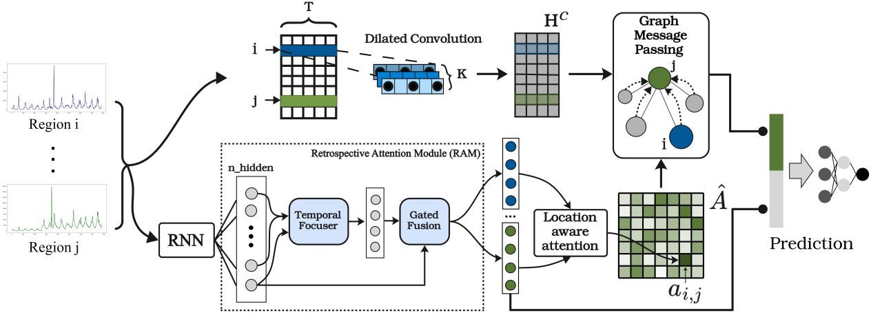元绮同学及其他作者,正是为了突破这一核心瓶颈。该论文创新性地提出了一种名为 RAM-GNN 的双流时空图神经网络架构。其核心是创新性设计的回顾性注意力模块,其作用类似于一个“智能信息筛”,能够动态地回顾并整合所有历史信息,而非仅仅依赖最终状态。这使得模型能够更全面、更精准地捕捉流行病传播的长期动态和时空规律,显著提升了长周期预测的准确性。