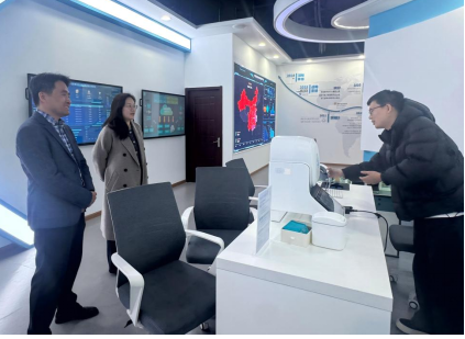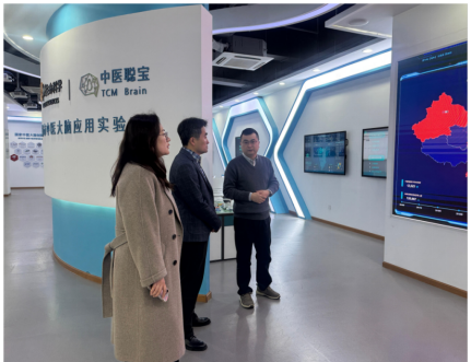 在顾高生董事长的引导下,参访团实地考察了企业办公环境与产品展示区。顾高生董事长详细介绍了公司在中医智能化领域的核心产品体系、技术解决方案及代表性合作案例,让学院一行对中医人工智能、健康医疗大数据等前沿方向的实际研发场景与市场应用有了直观且深入的了解。